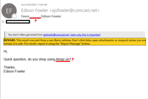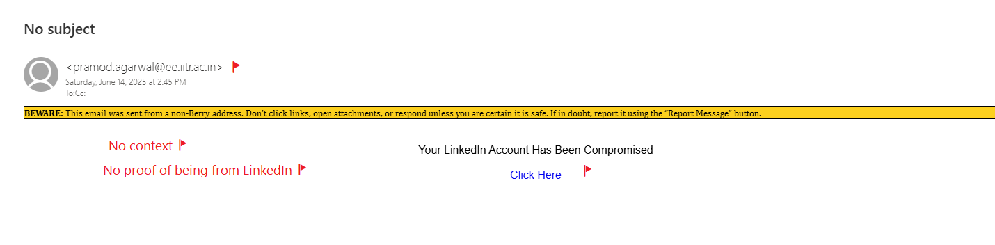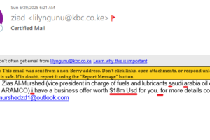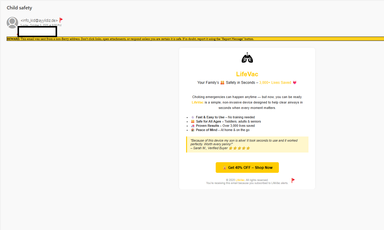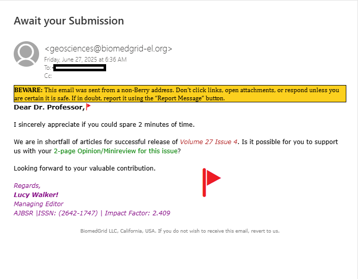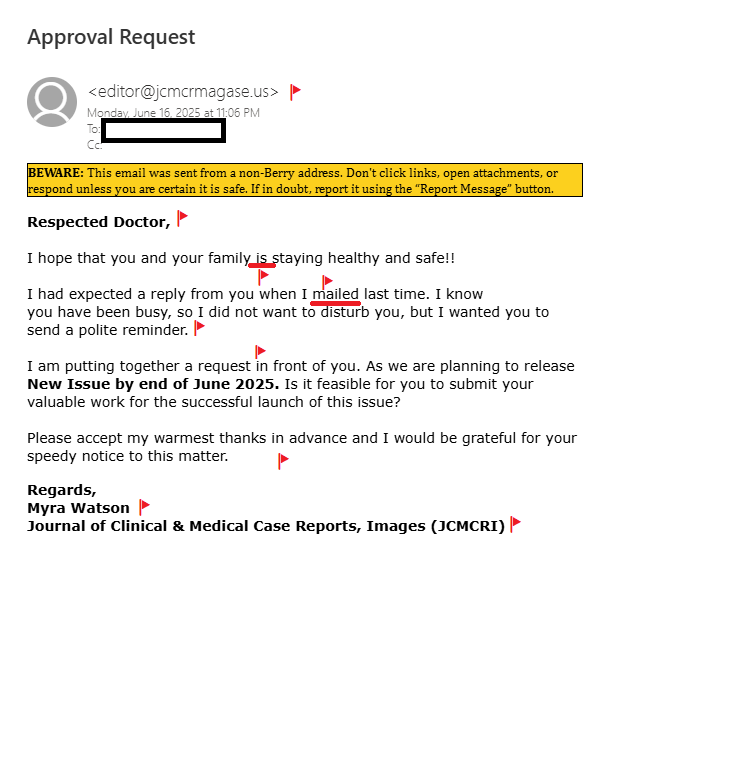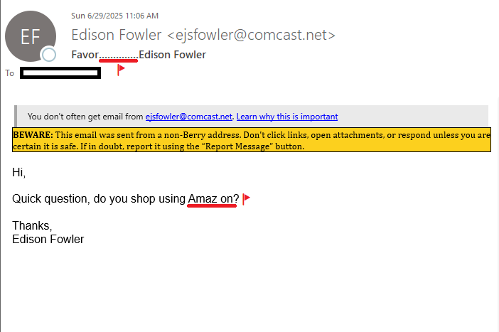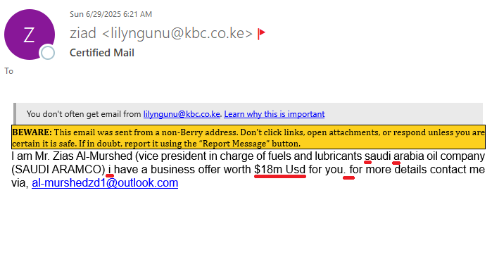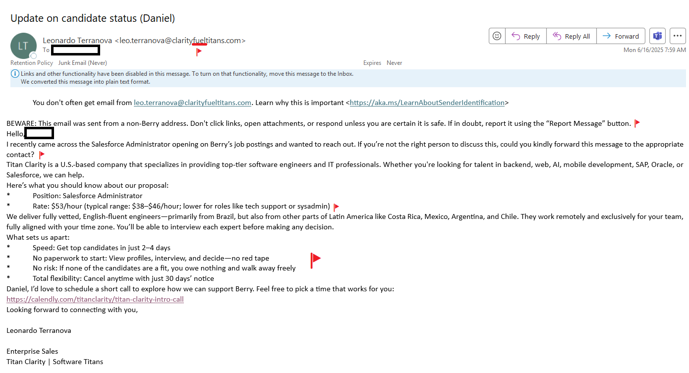 -Email address does not match the name of the company as shown at the bottom of the email.