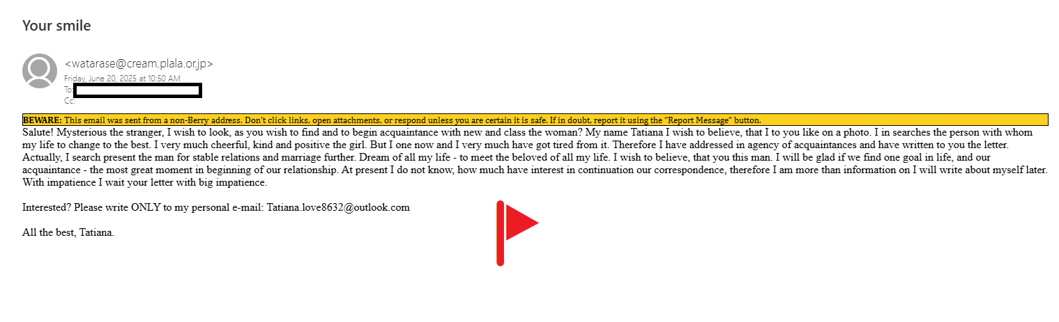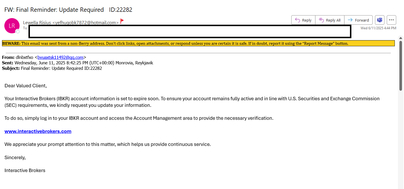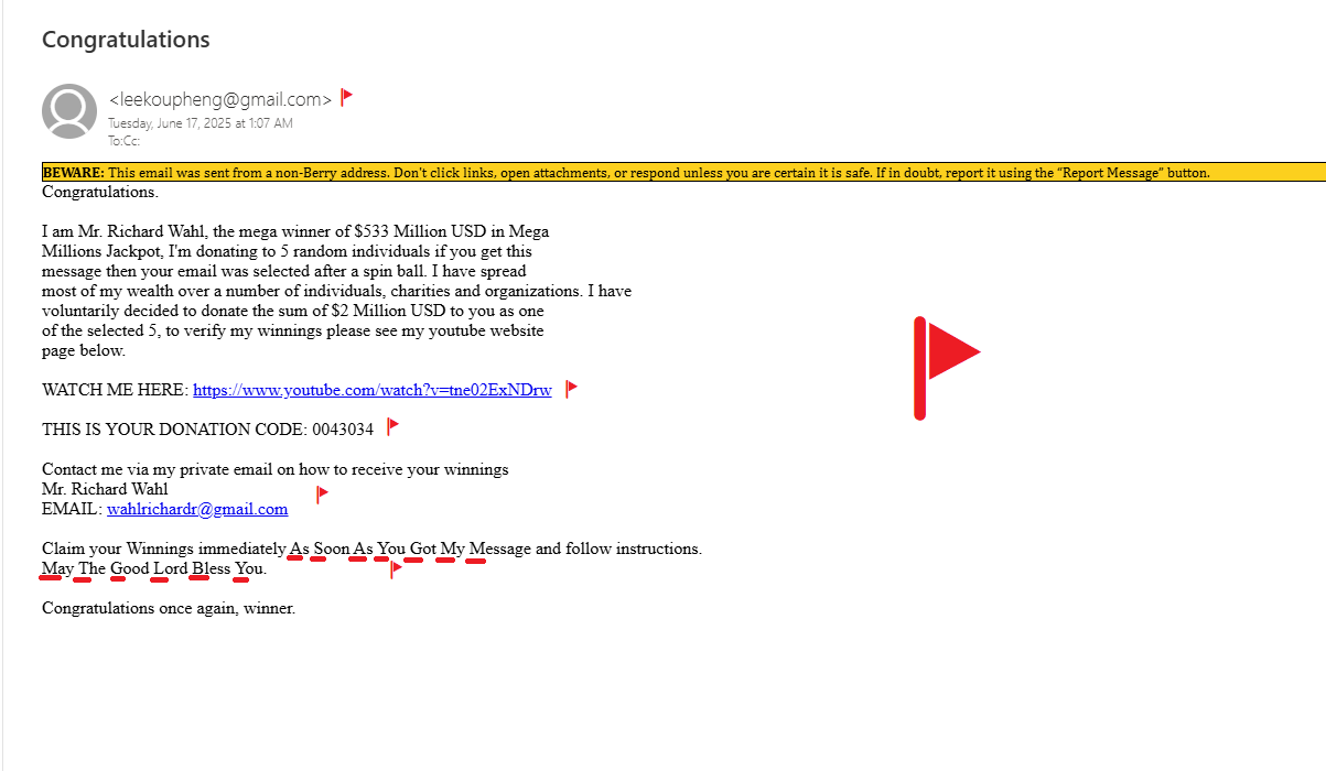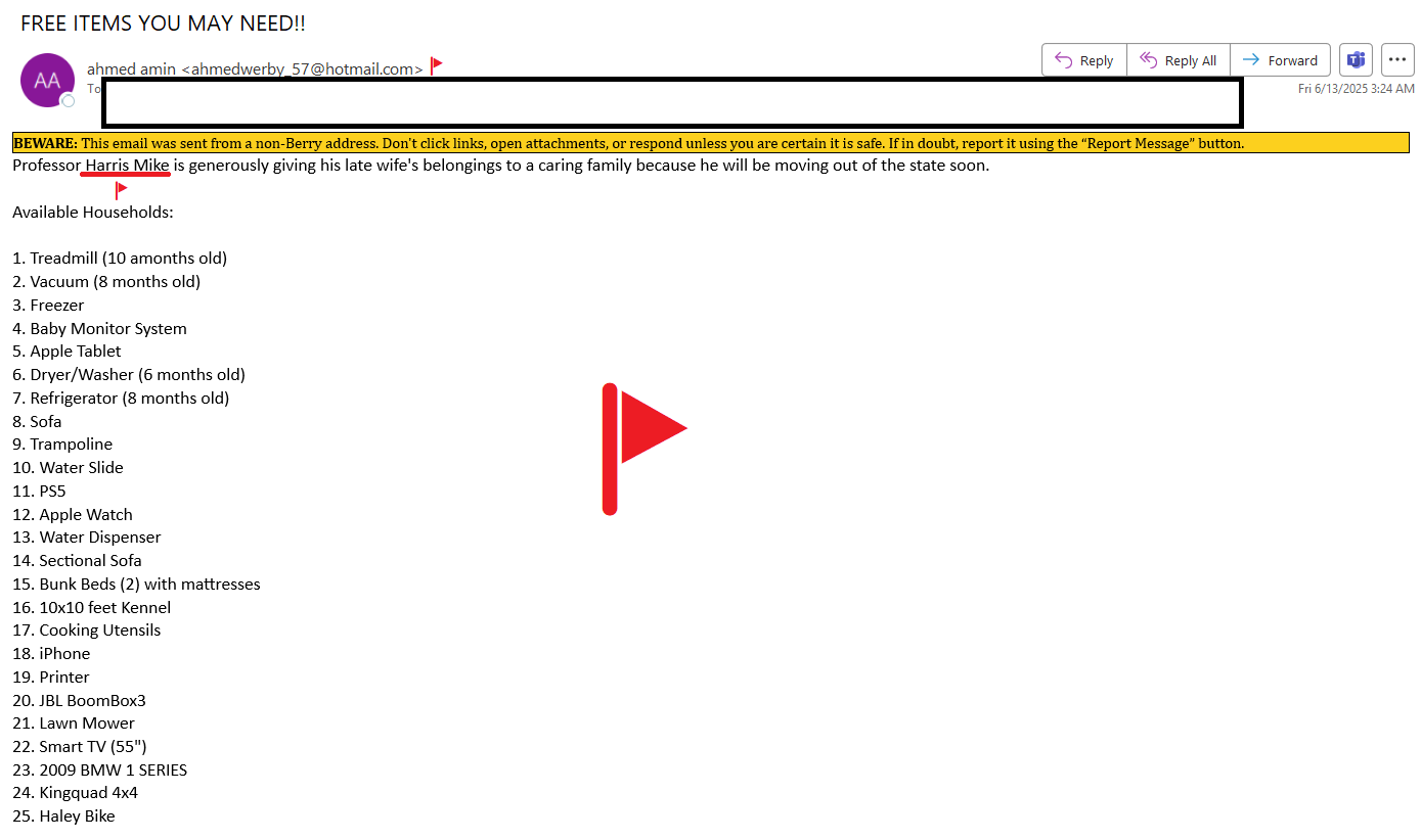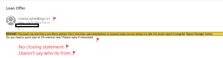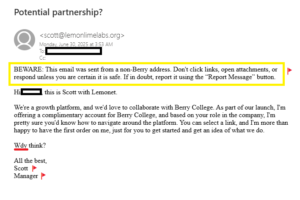 Every phishing email in this Phishbowl was caught right here at Berry. Don’t let them hook you!