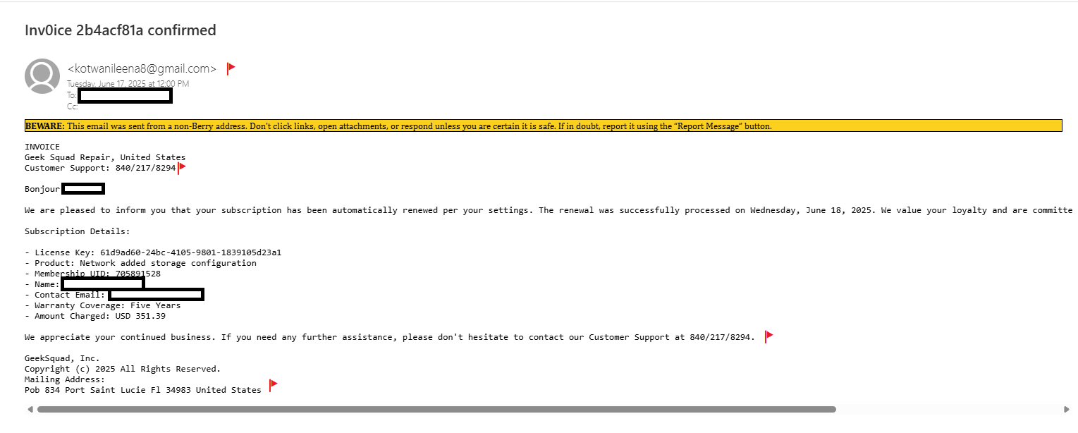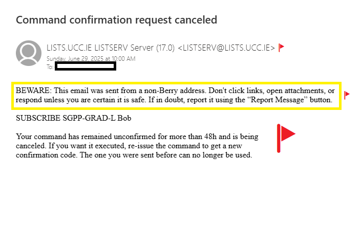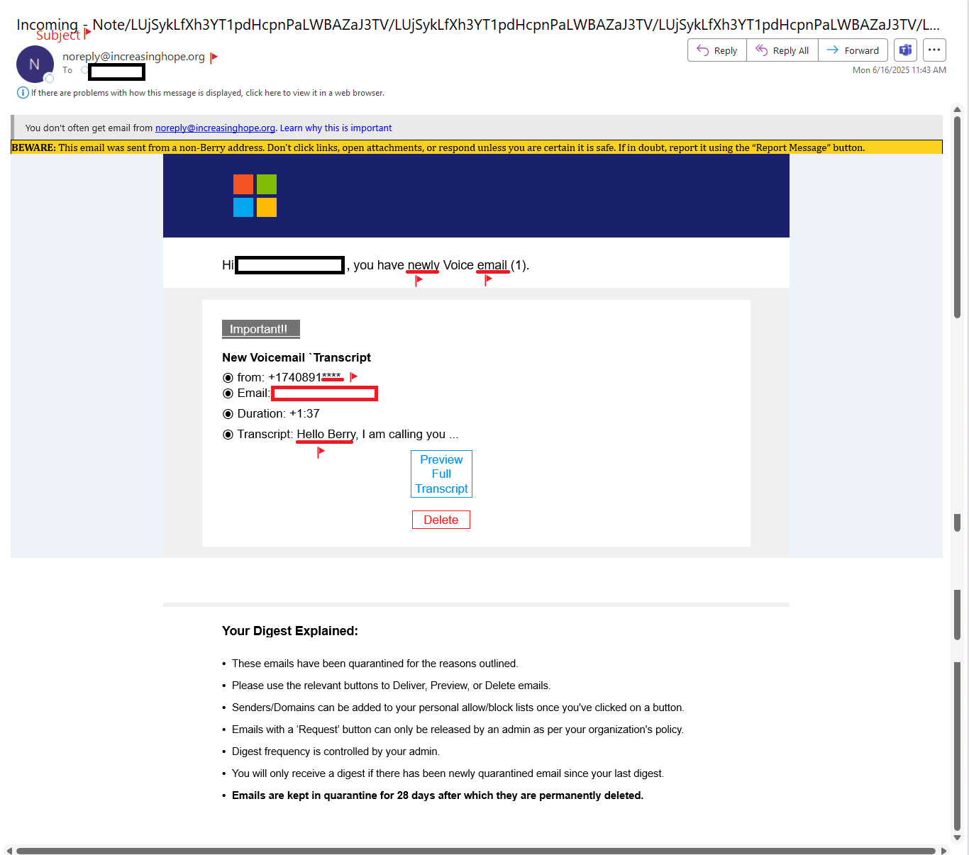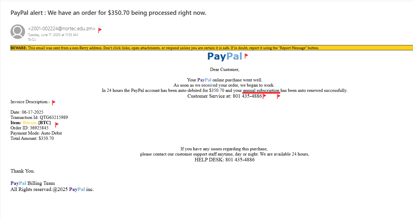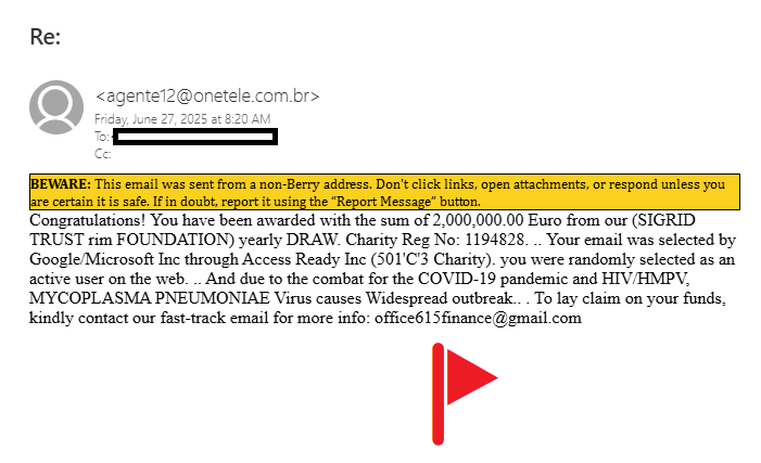 Every phishing email in this Phishbowl was caught right here at Berry. Don’t let them hook you!